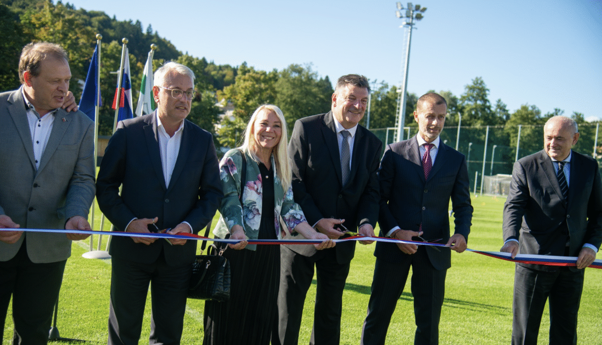 Čeferin in Mijatović ob odprtju nogometnega parka poudarila pomen vlaganja v infrastrukturo